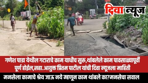 दिवा:- गणेश पाडा येथील गटाराचे काम आधीच सुरू केले आहे,सध्या हे काम थांबले असेल तर ते पावसापूर्वी काम पूर्ण होईल.तशा सूचना संबंधितांना देण्यात आल्या आहेत अशी माहिती दिवा प्रभाग समितीचे सहायक आयुक्त प्रितम पाटील यांनी दिवा न्यूज सोबत बोलताना दिली.