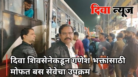 दिवा:-कोकणात जाणाऱ्या गणेश भक्तांसाठी दिवा शहरातून मोफत बसेस शिवसेनेच्या माध्यमातून गुरुवारी सोडण्यात आल्या. राज्याचे मुख्यमंत्री एकनाथ शिंदे व कल्याणचे खासदार श्रीकांत शिंदे यांच्या मार्गदर्शनाखाली हा उपक्रम राबवण्यात आला. दिवा शहरातील कोकणी बांधवांनी या मोफत बस सेवेला भरभरून प्रतिसाद दिला.संध्याकाळी दिवा शहरातून कोकणच्या दिशेने या बस रवाना झाल्या.यावेळी दिवा शहर शिवसेनेचे शहर प्रमुख माजी उपमहापौर रमाकांत मढवी, उपशहर प्रमुख शैलेश पाटील, उमेश भगत, निलेश पाटील,भालचंद्र भगत, गणेश मुंडे,साक्षी मढवी यांसह अनेक पदाधिकारी व शिवसैनिक उपस्थित होते.