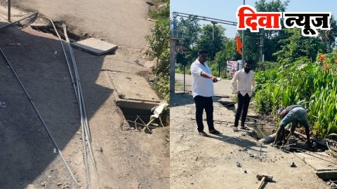 गणेश पाडा येथून दातीवली समांतर रस्त्याला जोडणाऱ्या रस्त्याच्या मधोमध असलेल्या गटारावरील स्लॅब तुटल्यामुळे तिथून येणाऱ्या जाणाऱ्या दुचाकीस्वारांचे तोल जाऊन वारंवार अपघात घडत होते. या संदर्भात गणेश पाड्यातील मनसेचे शाखाध्यक्ष सुशांत तांडेल आणि मनविसे शाखाध्यक्ष धनेश पाटील यांनी वारंवार महापालिका प्रशासनाकडे पाठपुरावा केला होता. याप्रकरणी दिवा प्रभाग समिती कार्यालयात शहर सचिव प्रशांत गावडे आणि विभाग सचिव परेश पाटील यांनी सार्वजनिक बांधकाम विभागाच्या अधिकाऱ्यांची भेट घेऊन चर्चा केली होती. त्यावेळी संपूर्ण गटार नवीन बांधण्यात येणार असून त्याची फाईलही मंजूर झाल्याचे सांगण्यात आले होते.